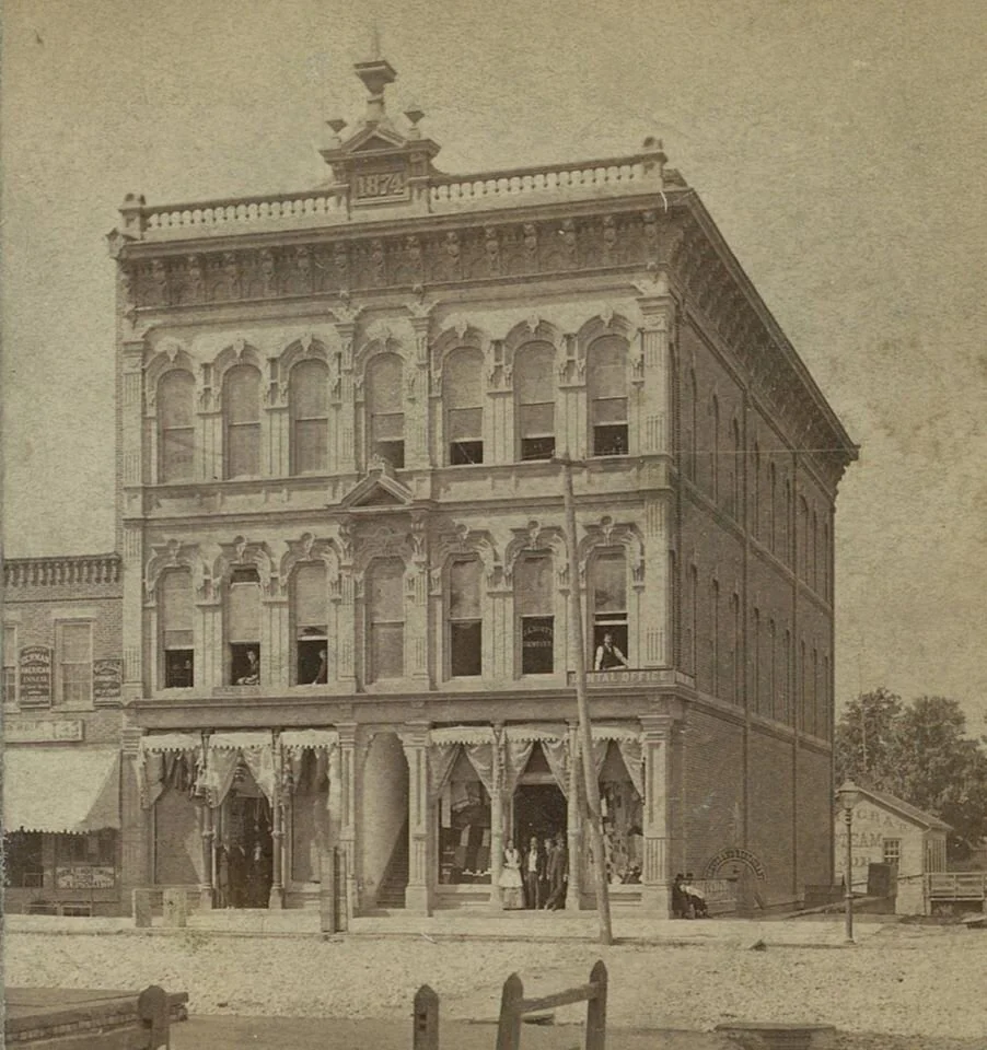 To the right, The Stone Front Building at Clinton and Third built in 18..